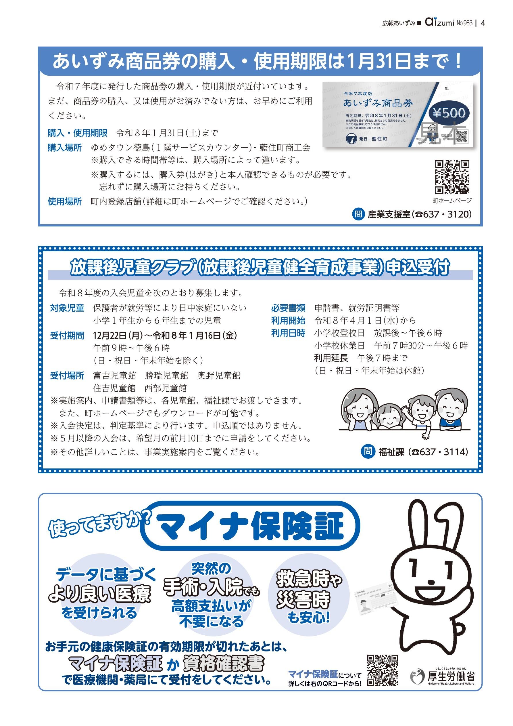 「広報あいずみ 2025年12月号」は藍住町が発行している広報誌です