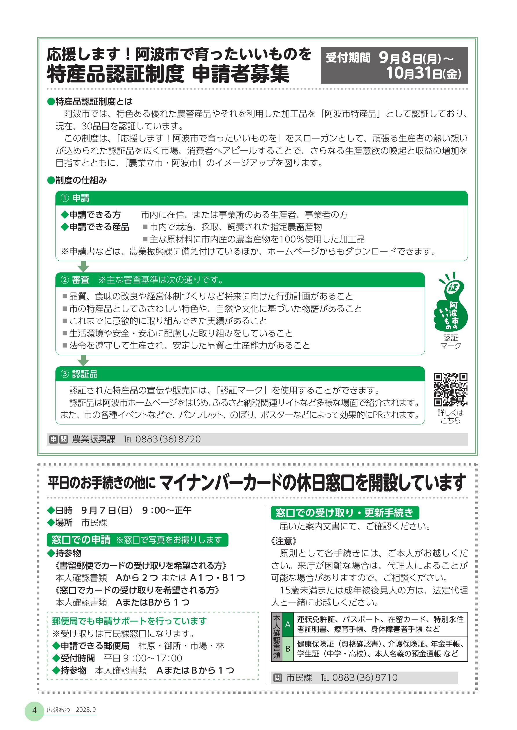 「広報あわ 2025年9月号」は阿波市が発行している広報誌です。