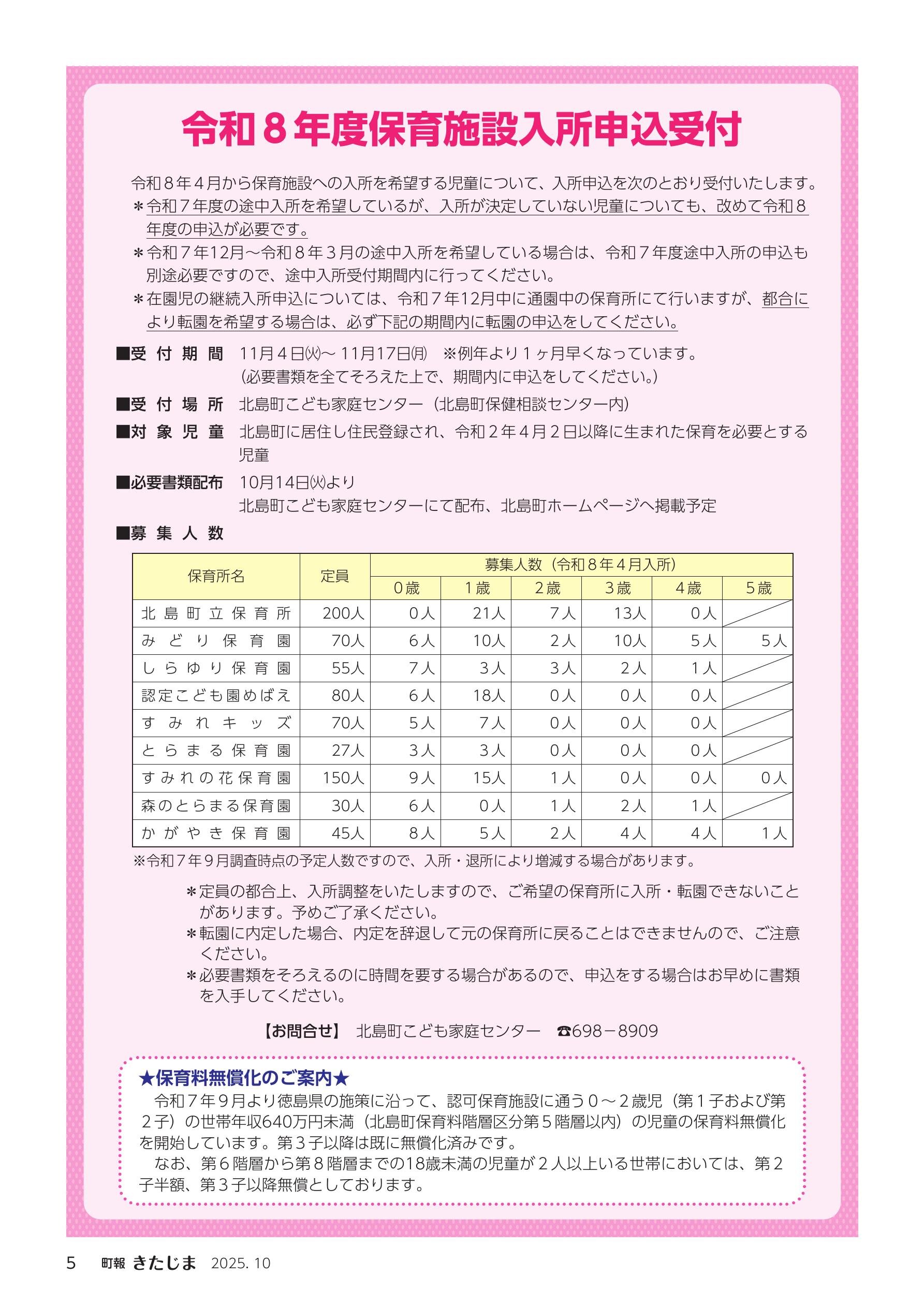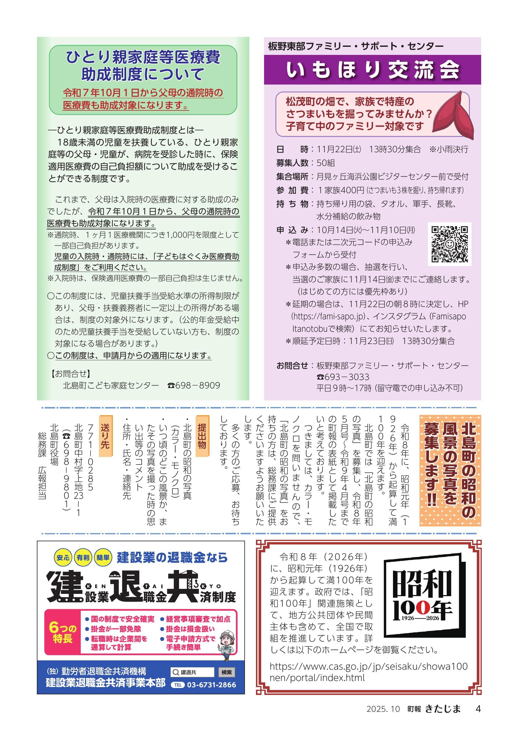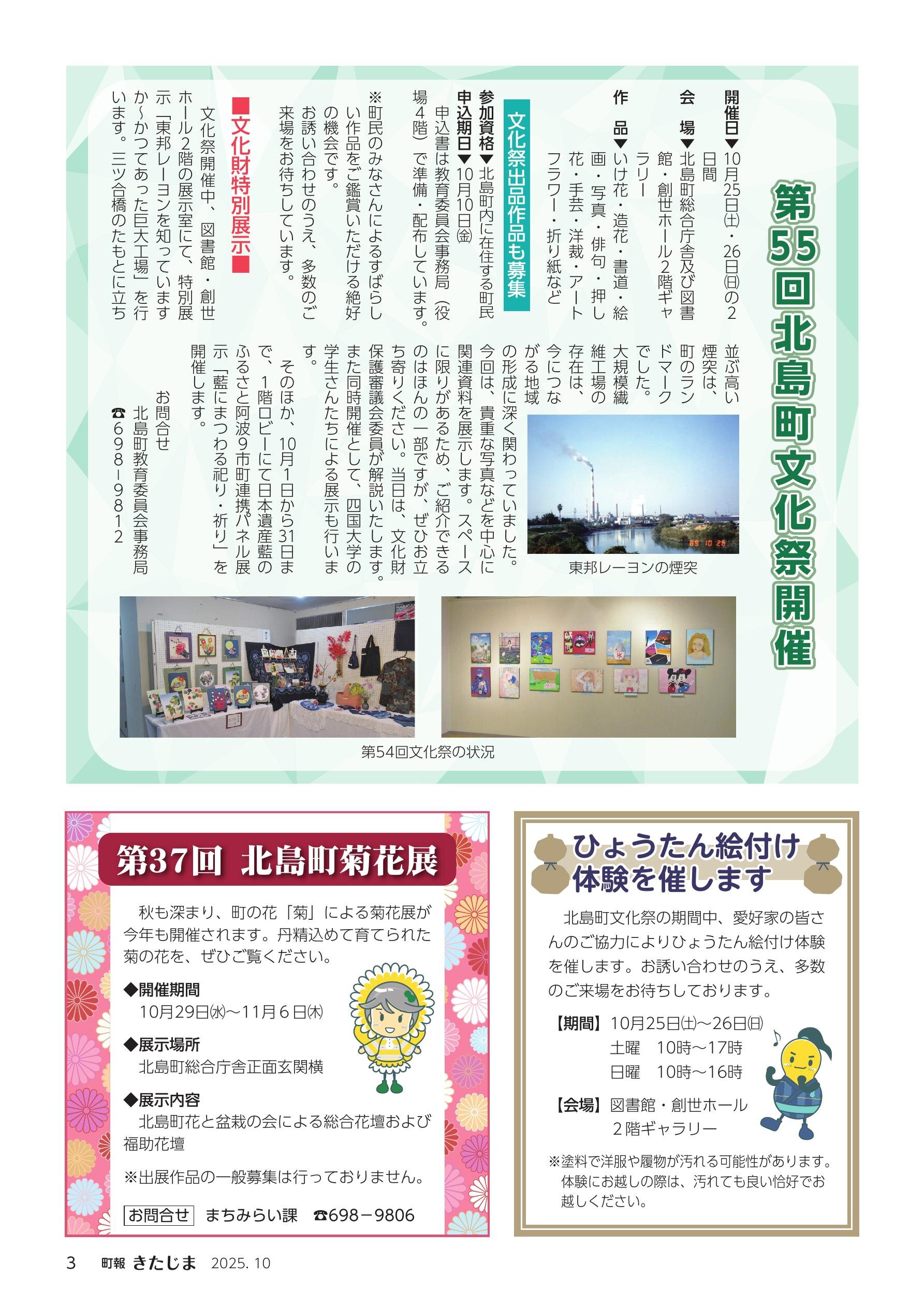 「町報きたじま 2025年10月号」は北島町が発行している広報誌です - ウェブサイト: https://www.town.kitajima.lg.jp/