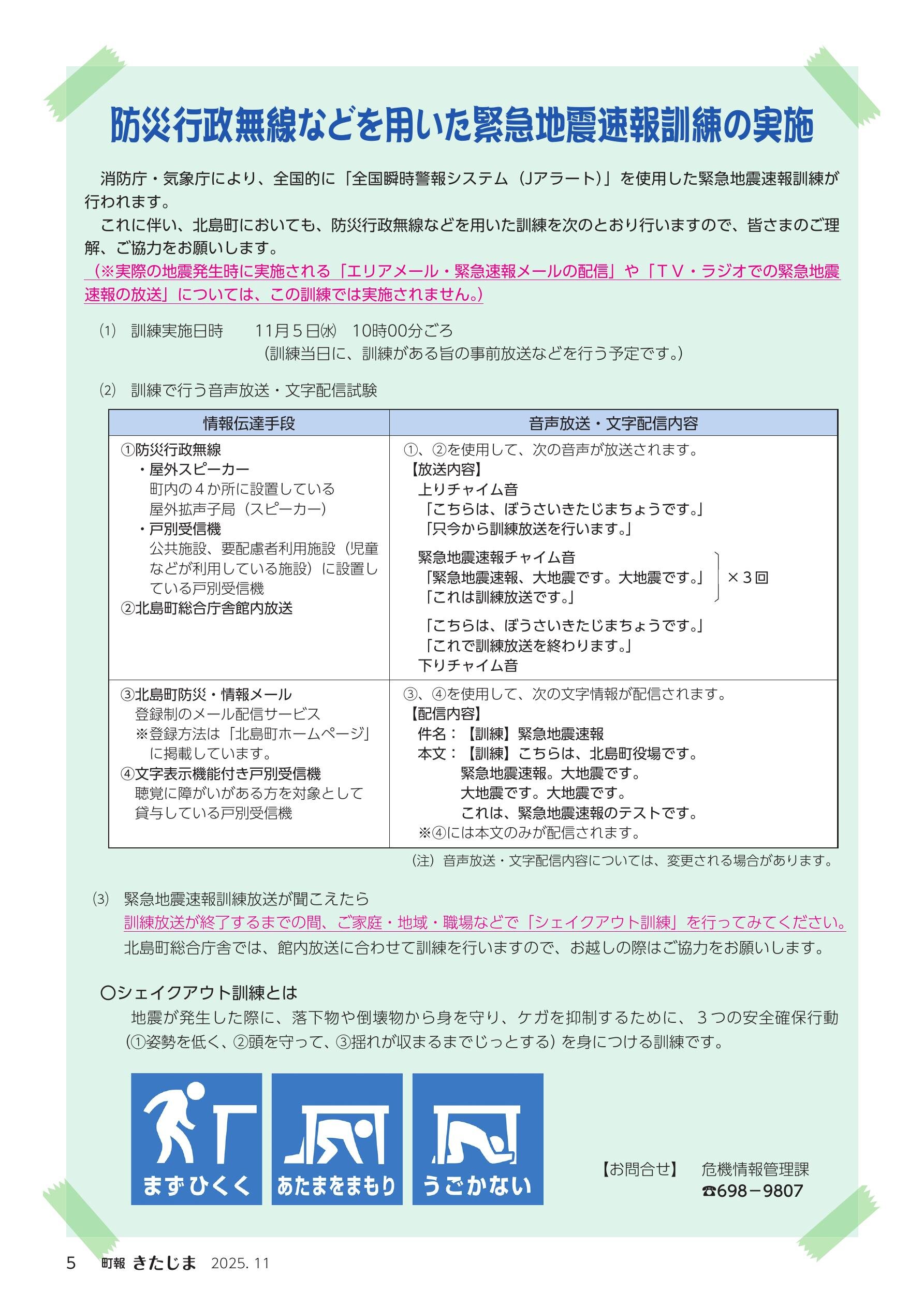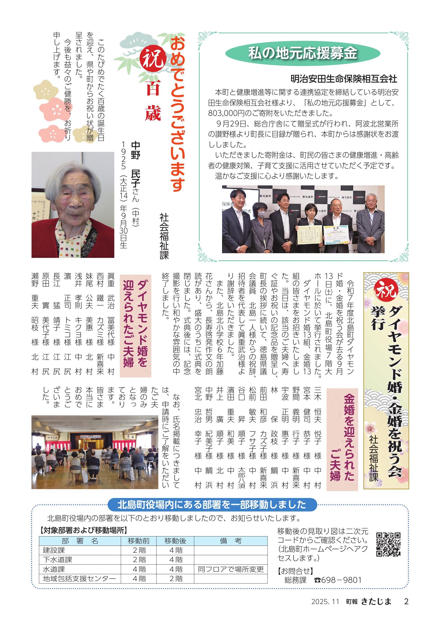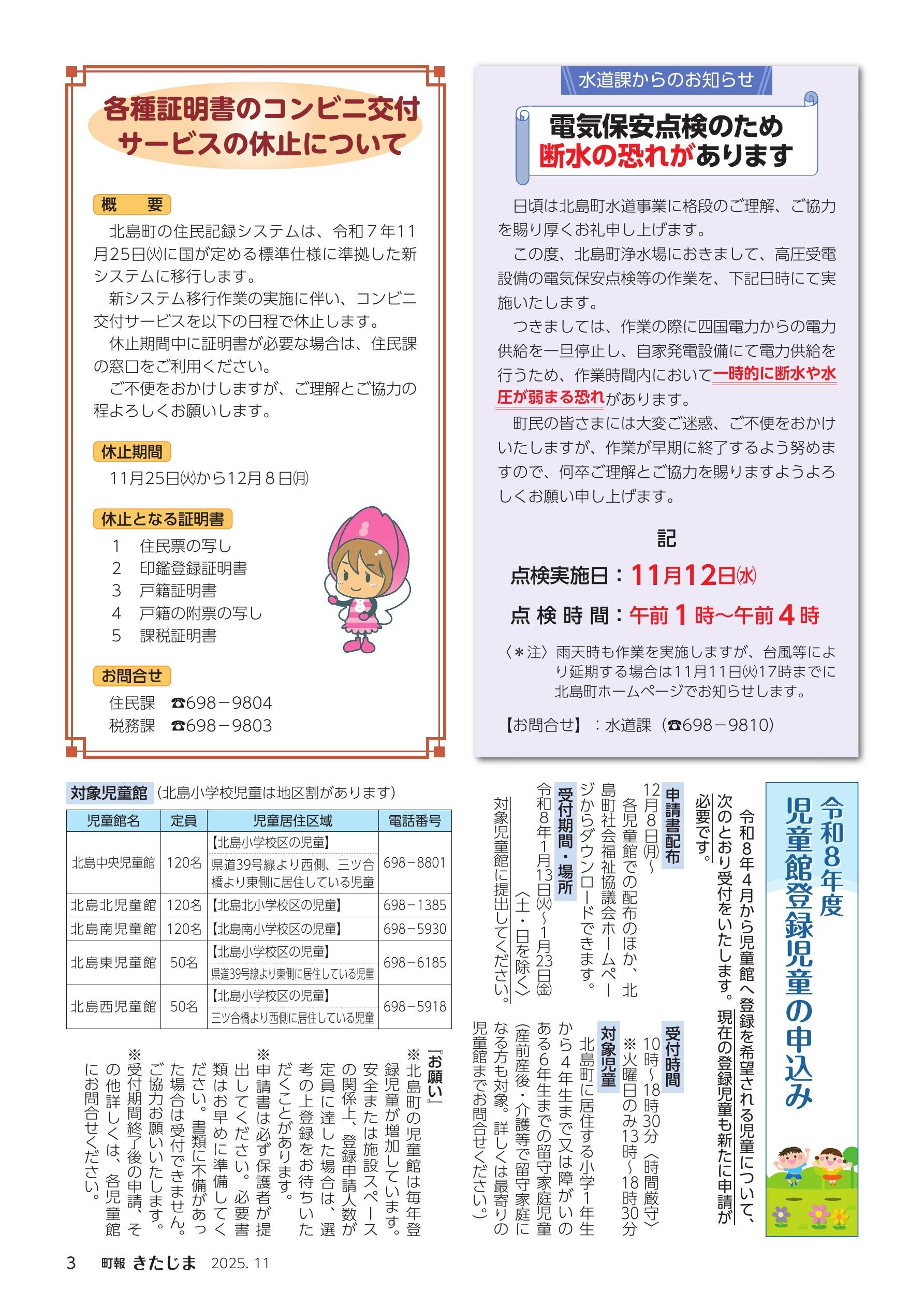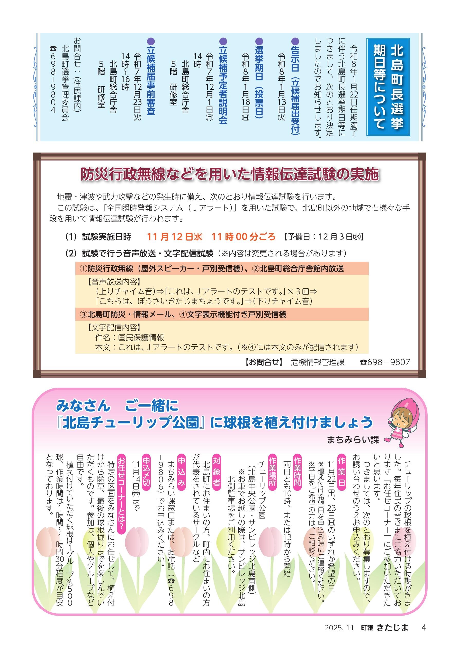 「町報きたじま 2025年11月号」は北島町が発行している広報誌です