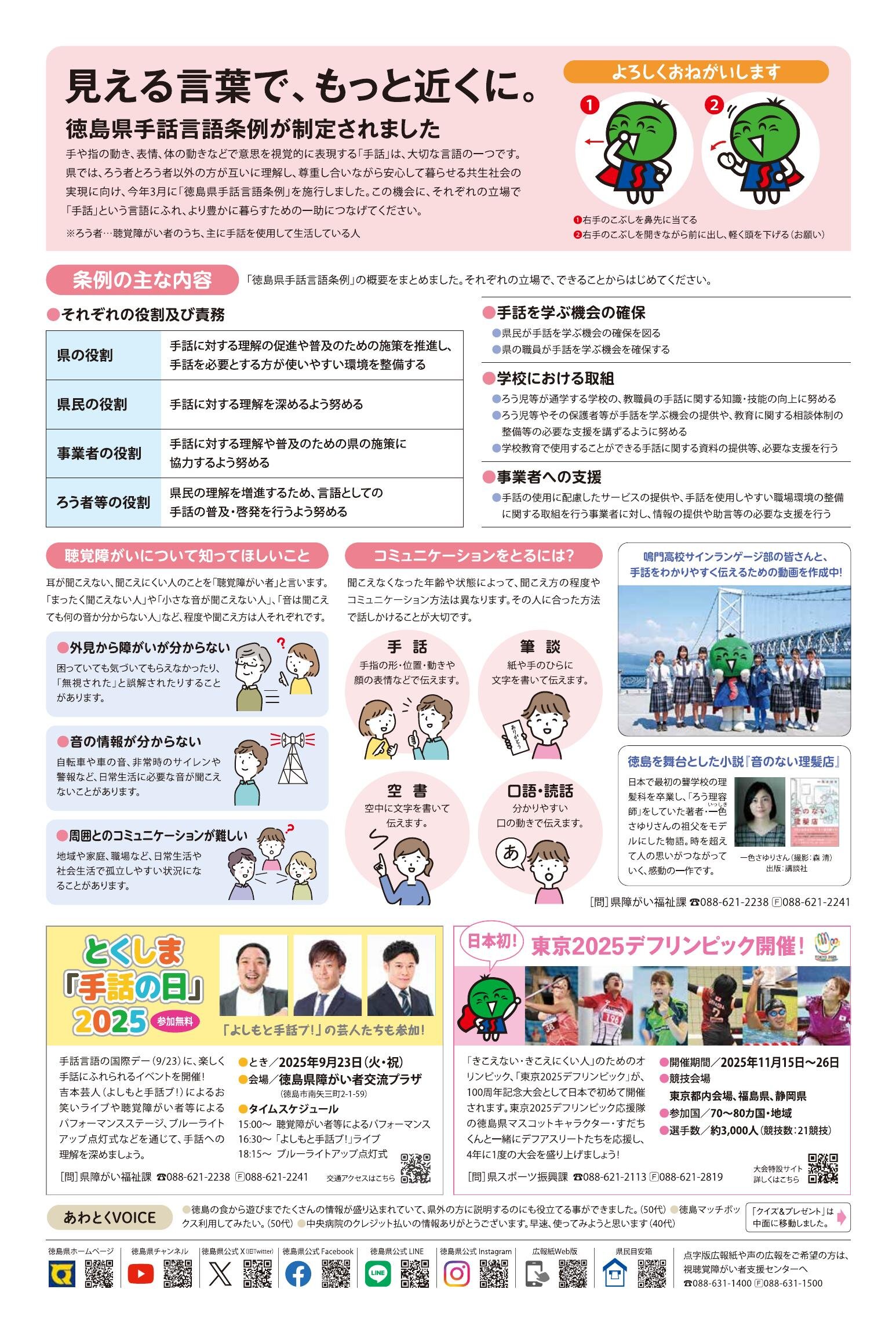 「県政だより OUR徳島 2025年9月号」は徳島県が発行している広報誌です