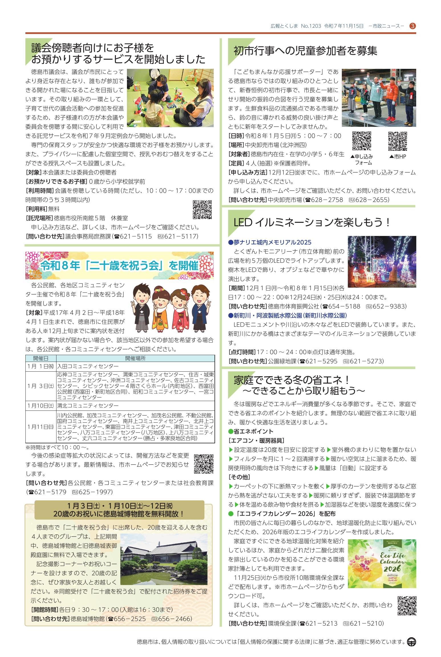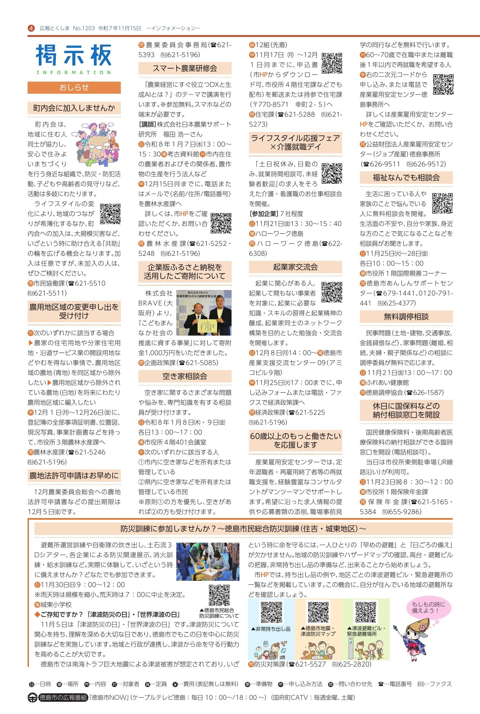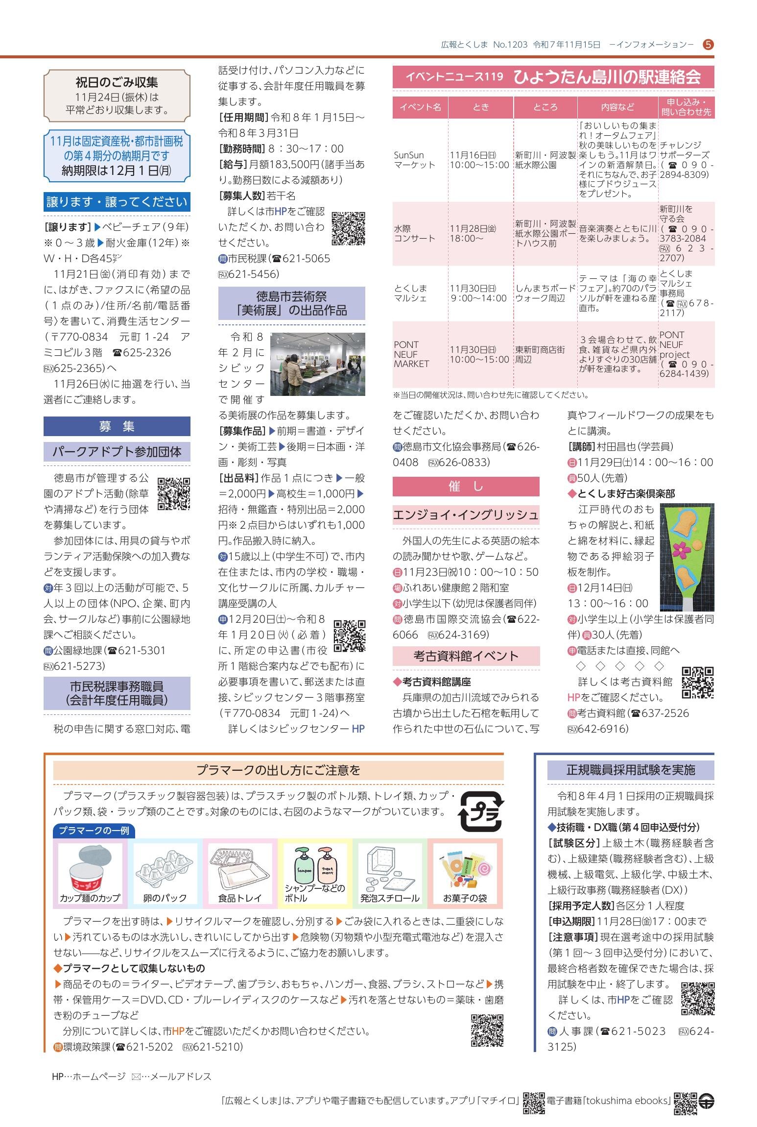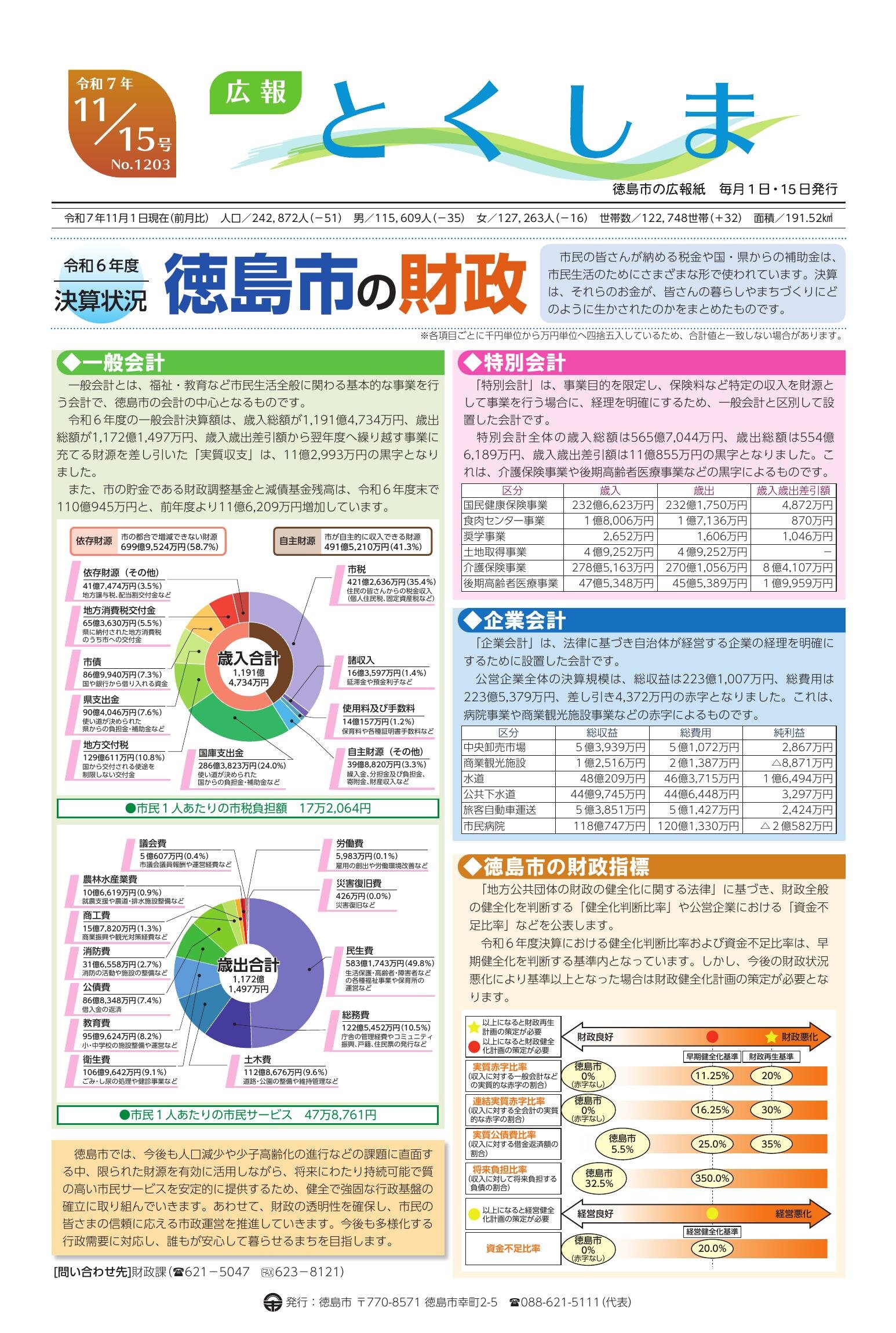 「広報とくしま 2025年11月15日号」は徳島市が発行している広報誌です - ウェブサイト: https://www.city.tokushima.tokushima.jp/index.html
