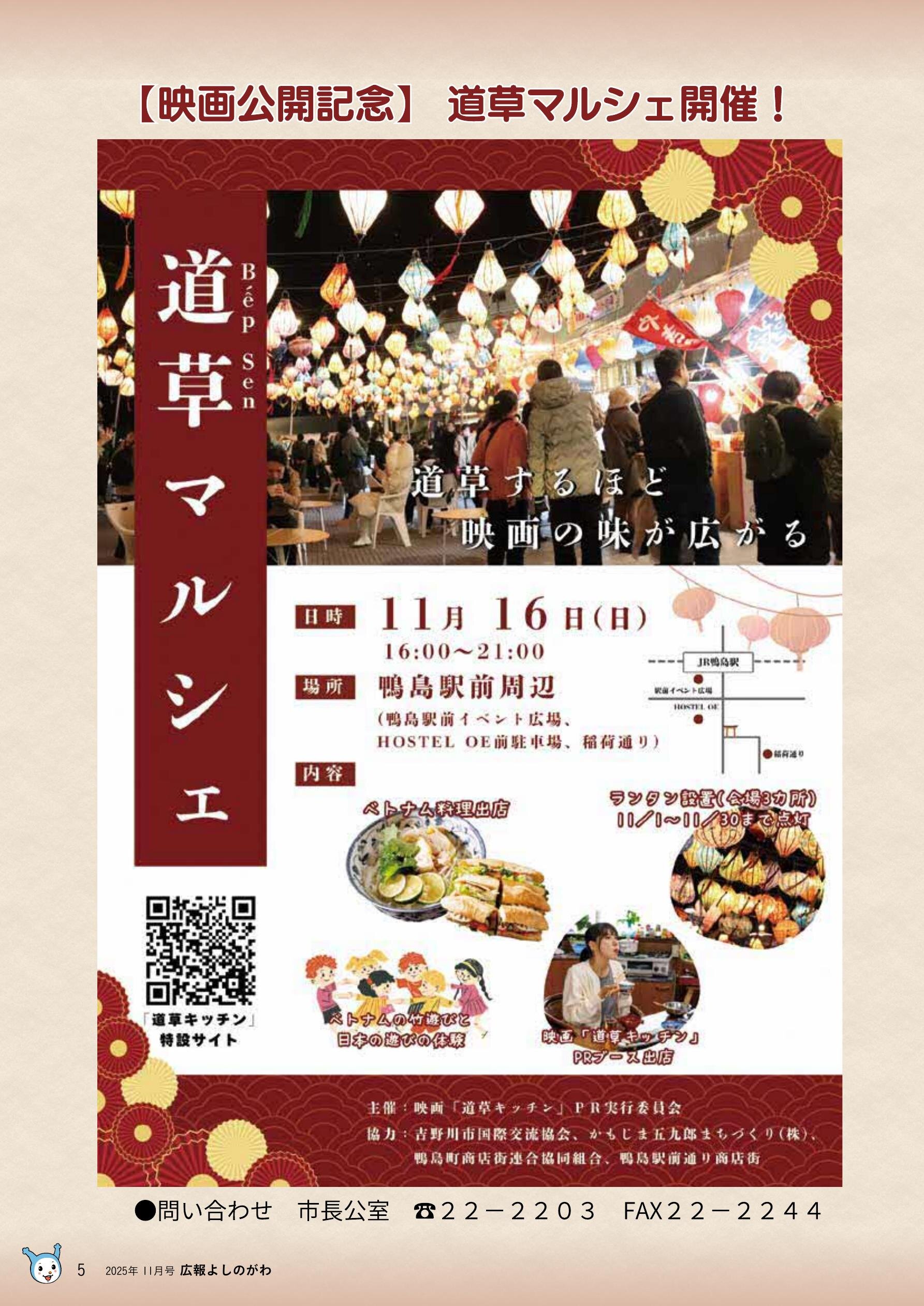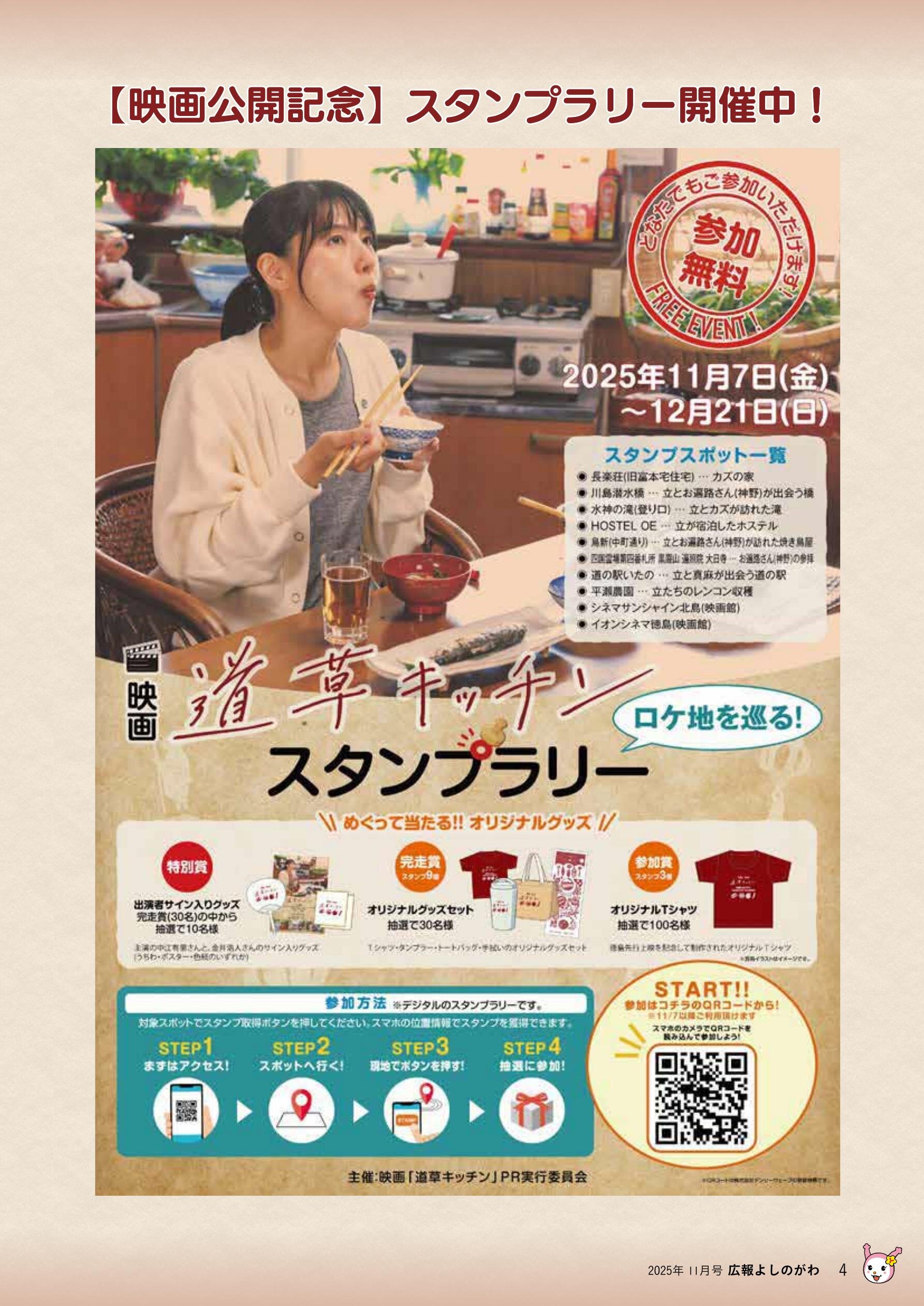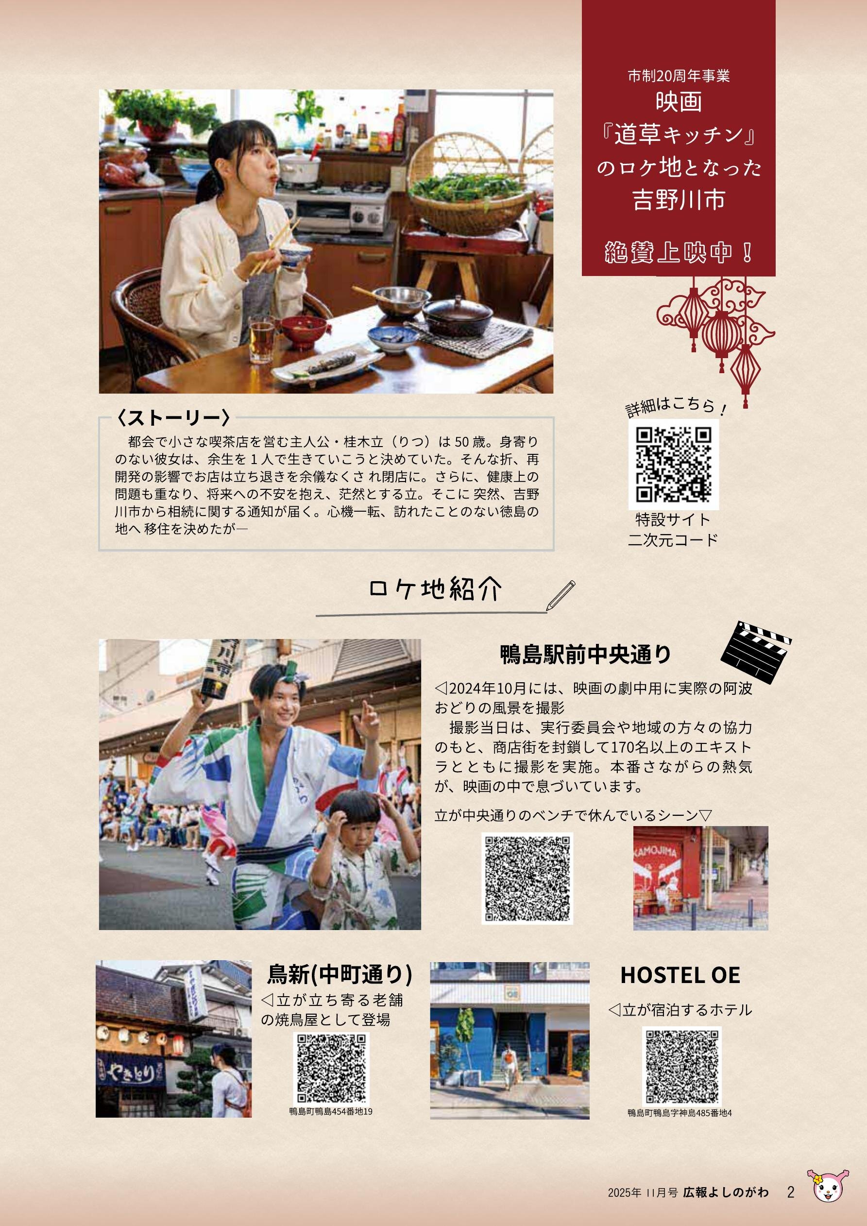 • ・市制20周年事業 映画『道草キッチン』のロケ地となった吉野川市 絶賛上映中!