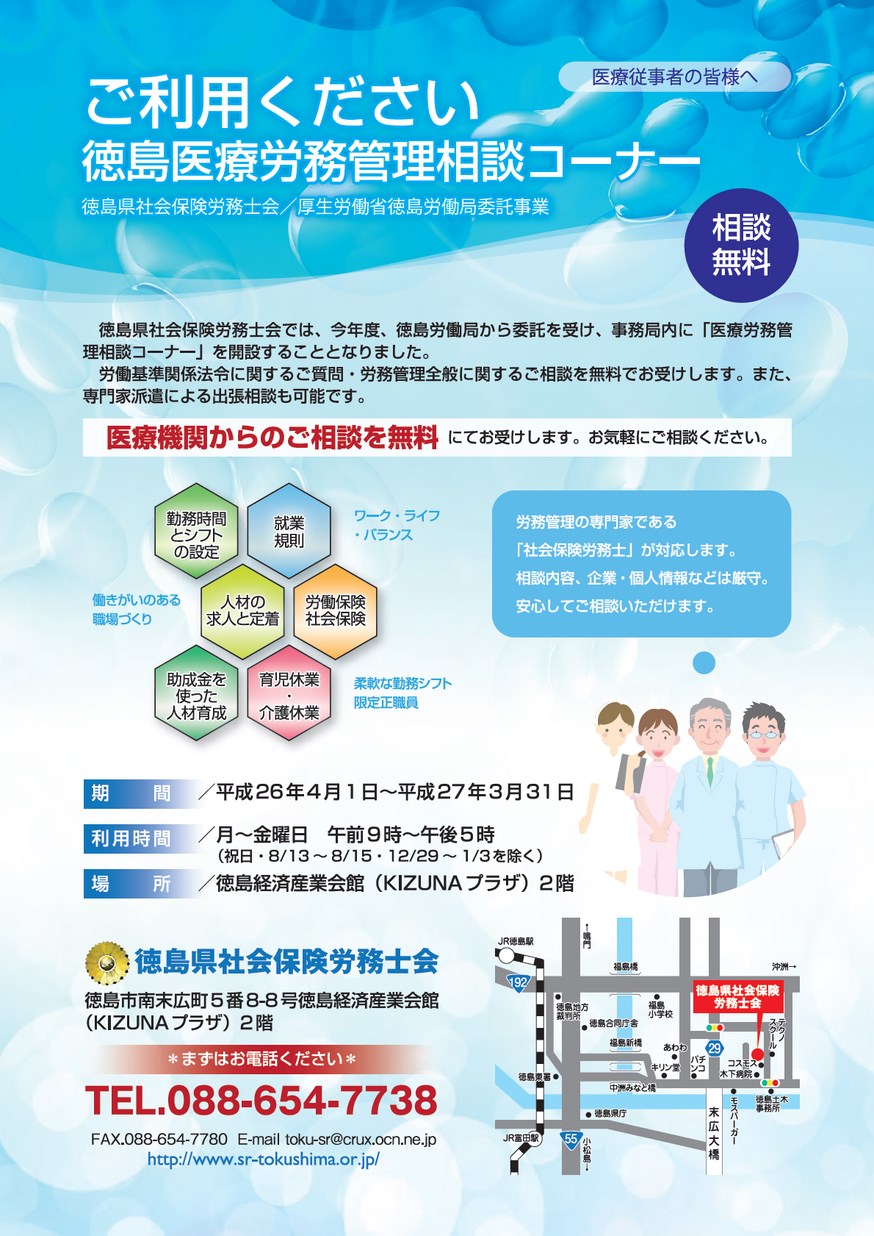 ご利用ください 徳島医療労務管理相談コーナー(徳島市)