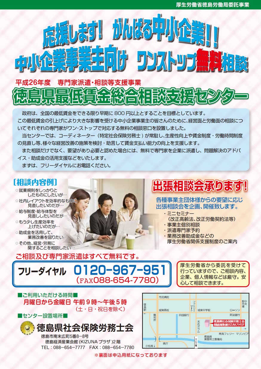 お問い合せ先:徳島県最低賃金総合相談支援センター