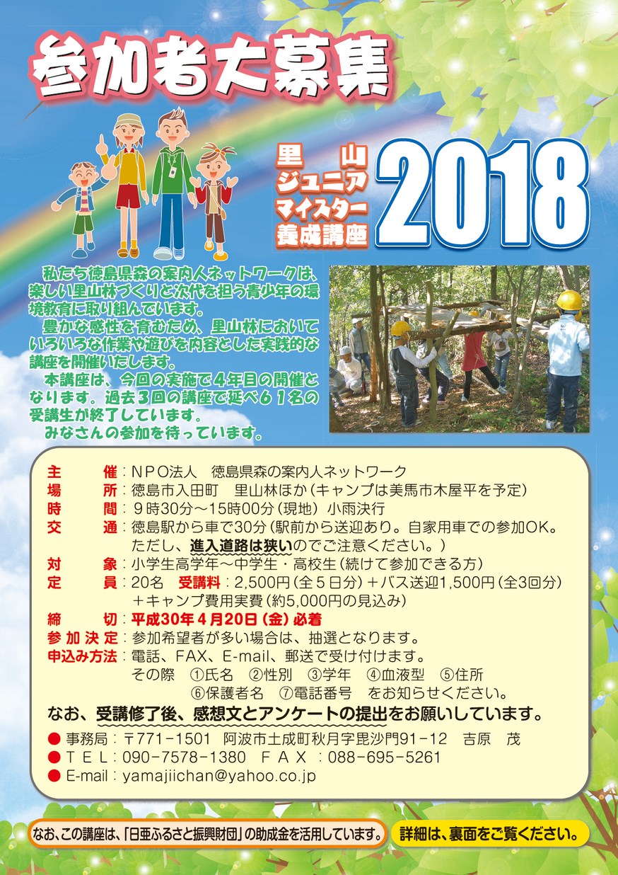 2018里山ジュニアマイスター養成講座 参加者大募集(徳島市)