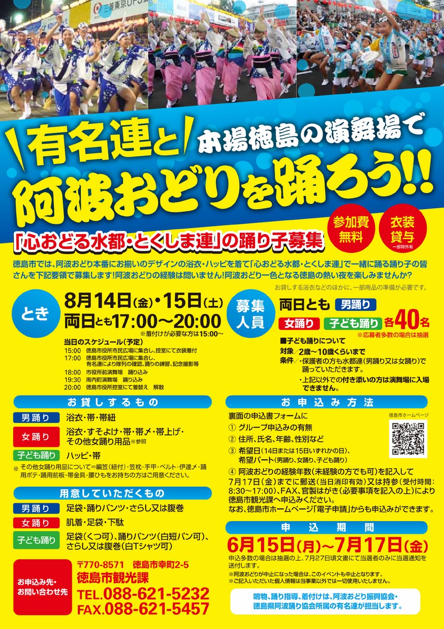 有名連と本場徳島の演舞場で阿波おどりを踊ろう!!(徳島市)