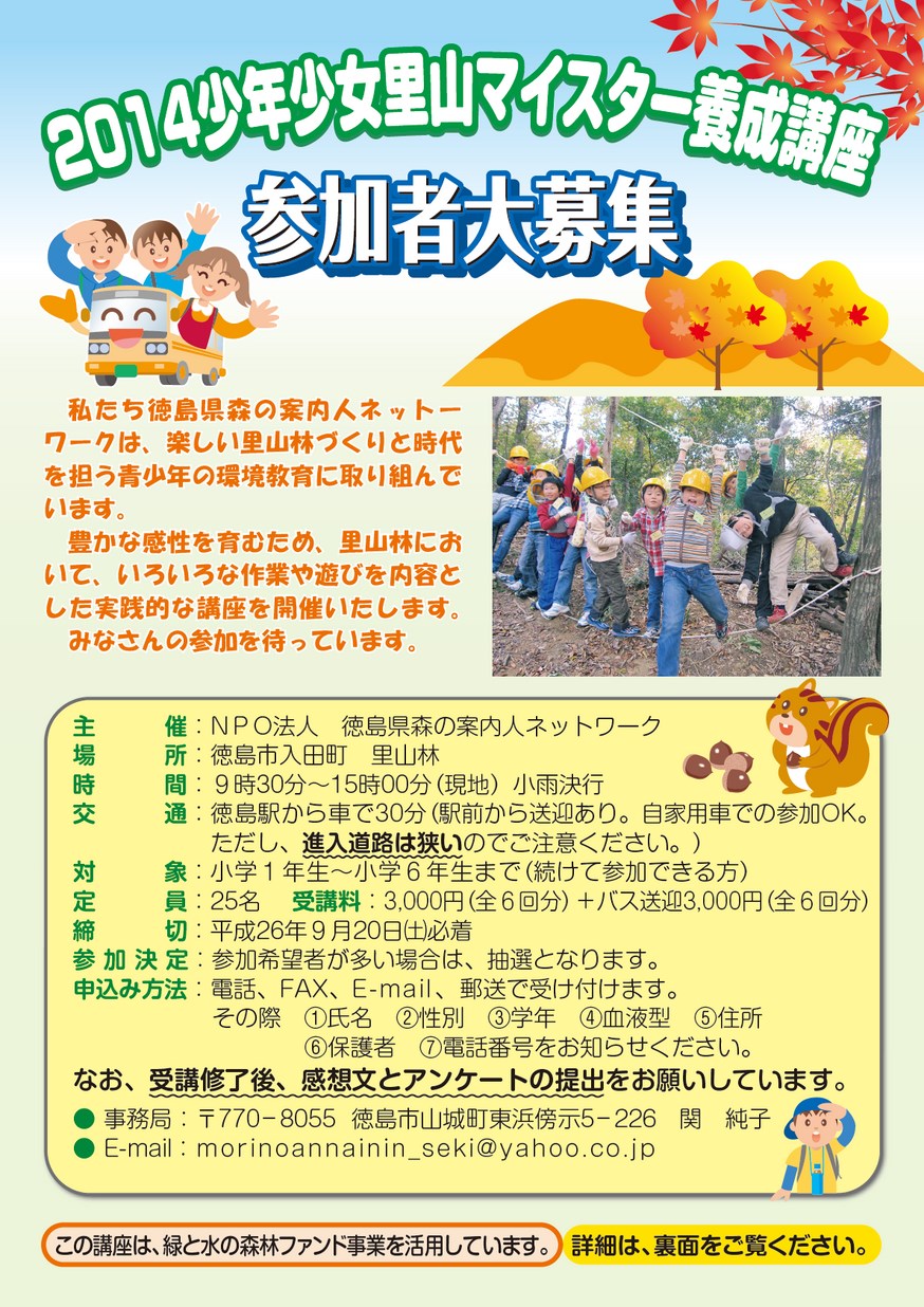 2014少年少女里山マイスター養成講座参加者大募集(徳島市)