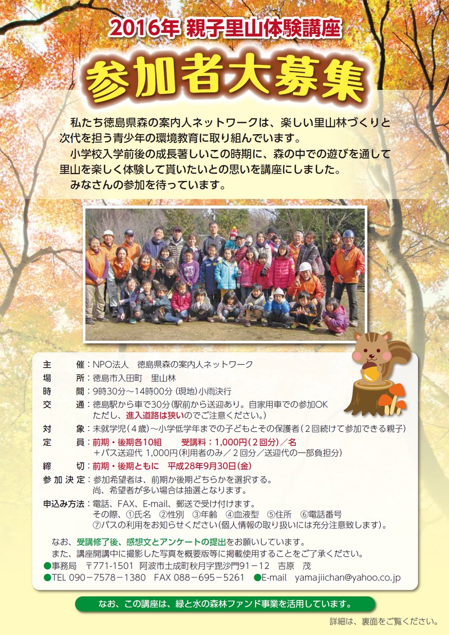2016年 親子里山体験講座 参加者大募集(徳島市)