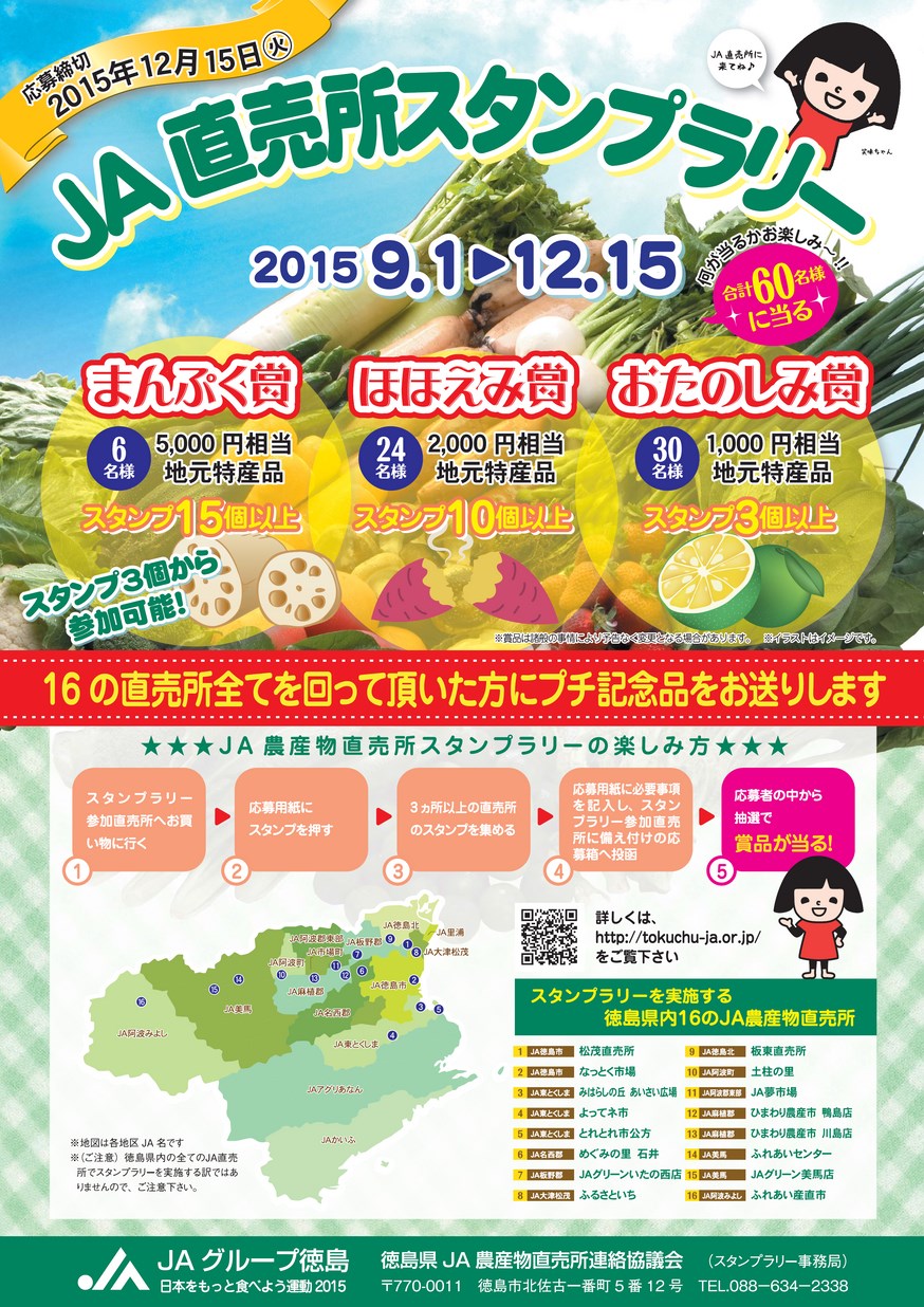 お問い合せ先:徳島県JA農産物直売所連絡協議会(スタンプラリー事務局)