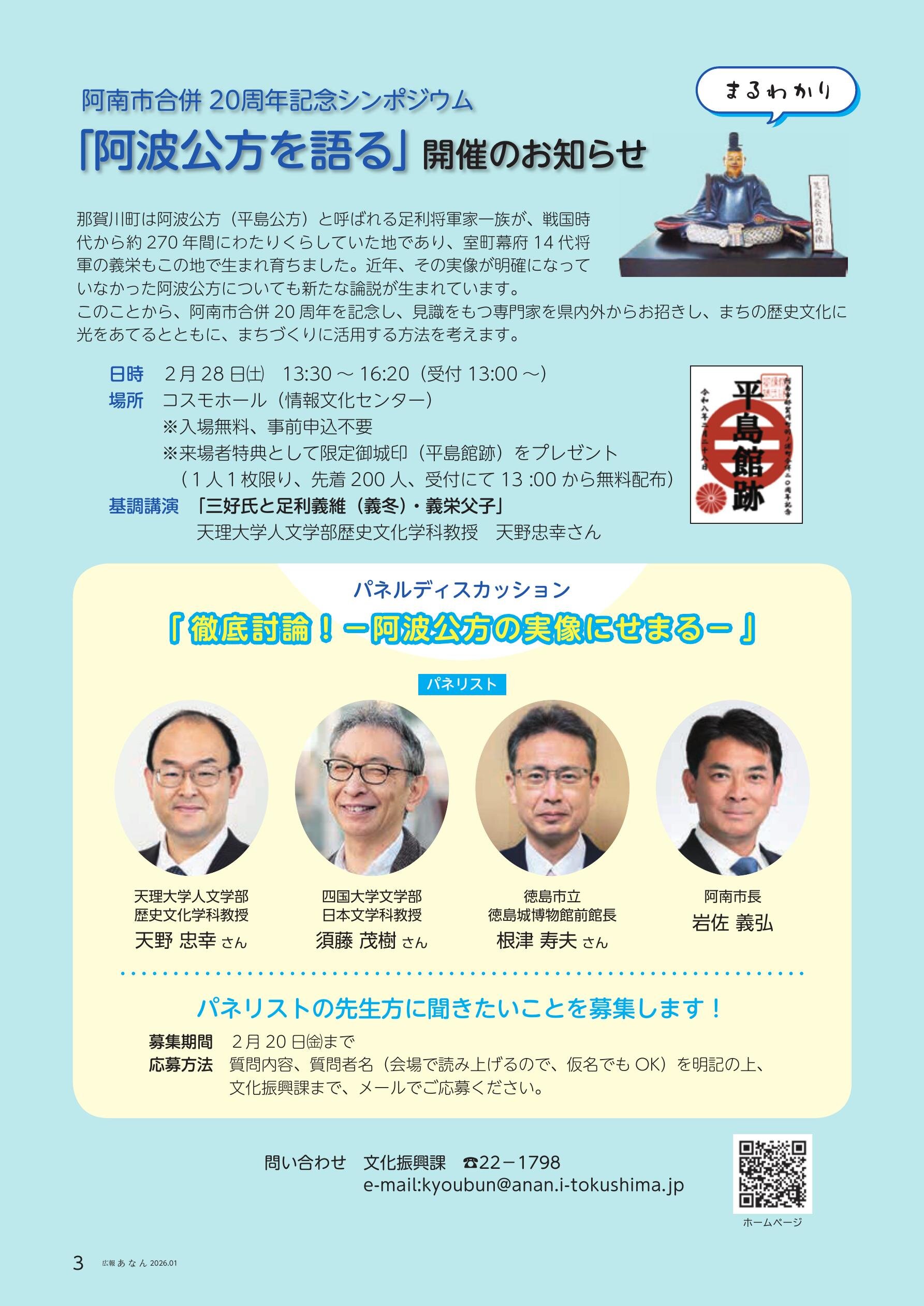 ・阿南市合併 20周年記念シンポジウム「阿波公方を語る」開催のお知らせ
