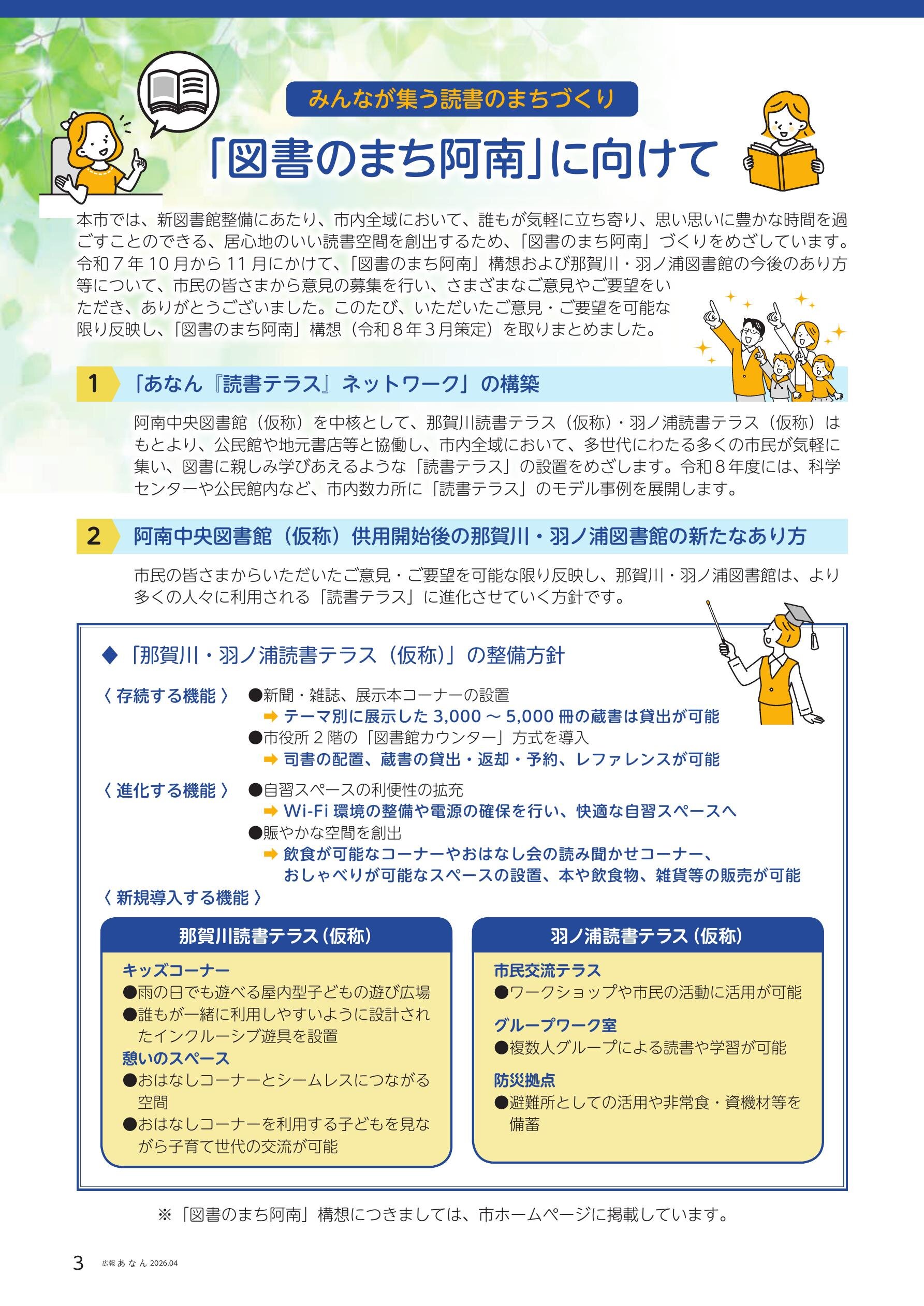 - ・みんなが集う読書のまちづくり「図書のまち阿南」に向けて