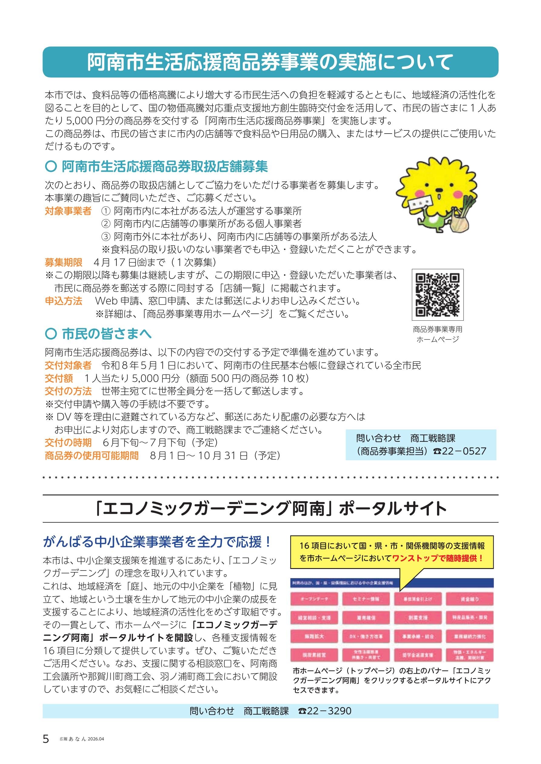 「広報あなん 2026年4月号」は阿南市が発行している広報誌です。 - ウェブサイト: https://www.city.anan.tokushima.jp/