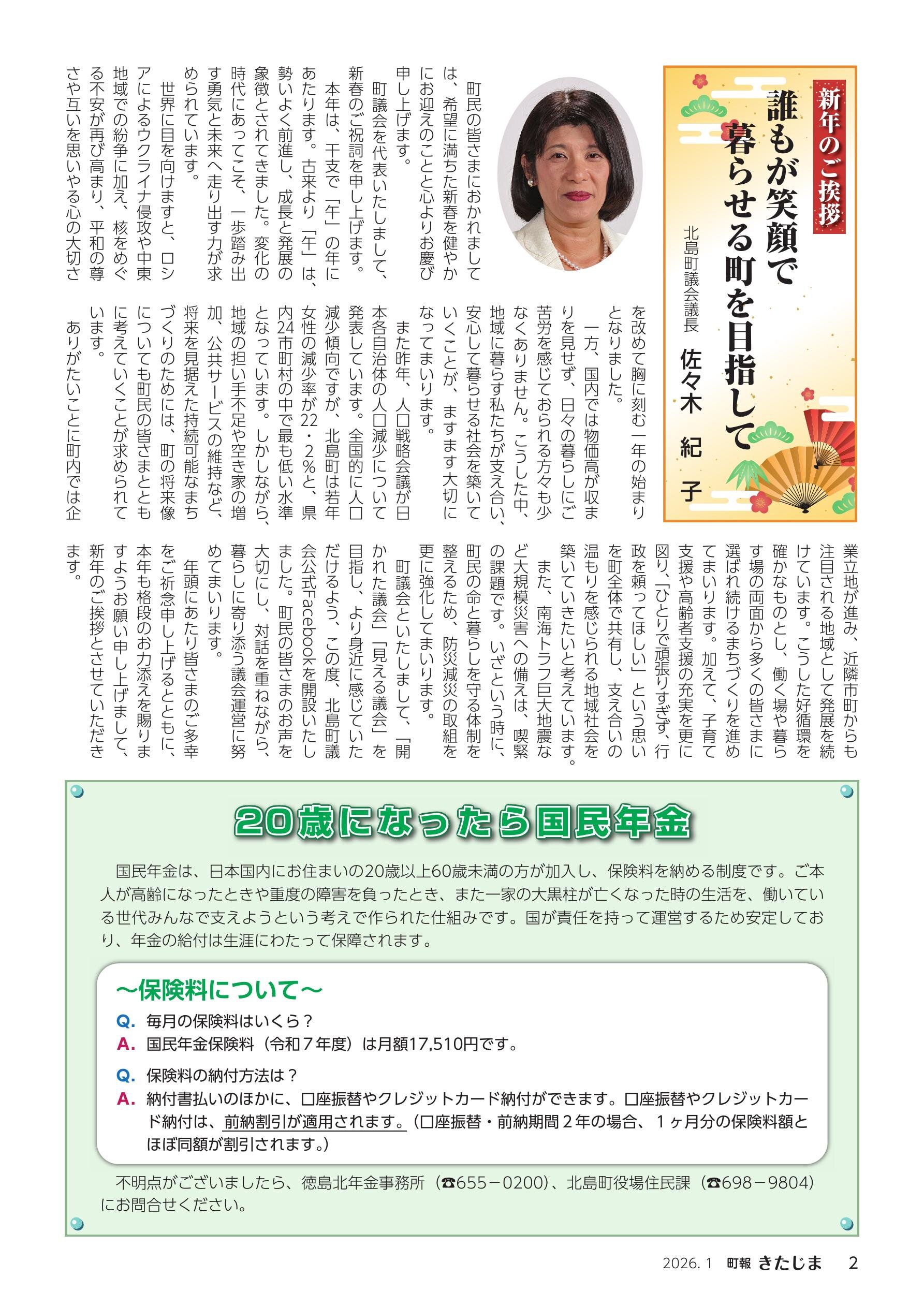 「町報きたじま 2026年1月号」は北島町が発行している広報誌です