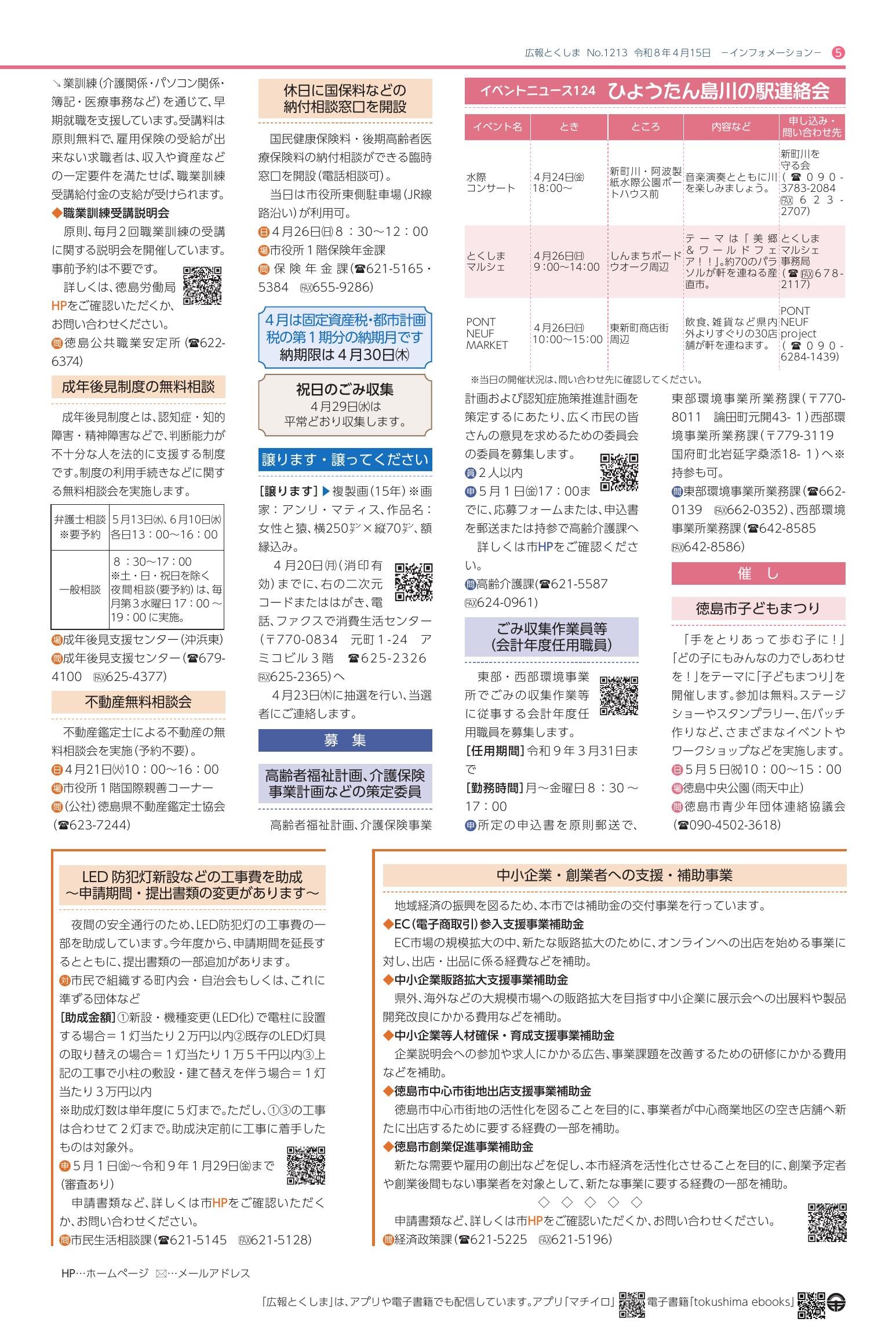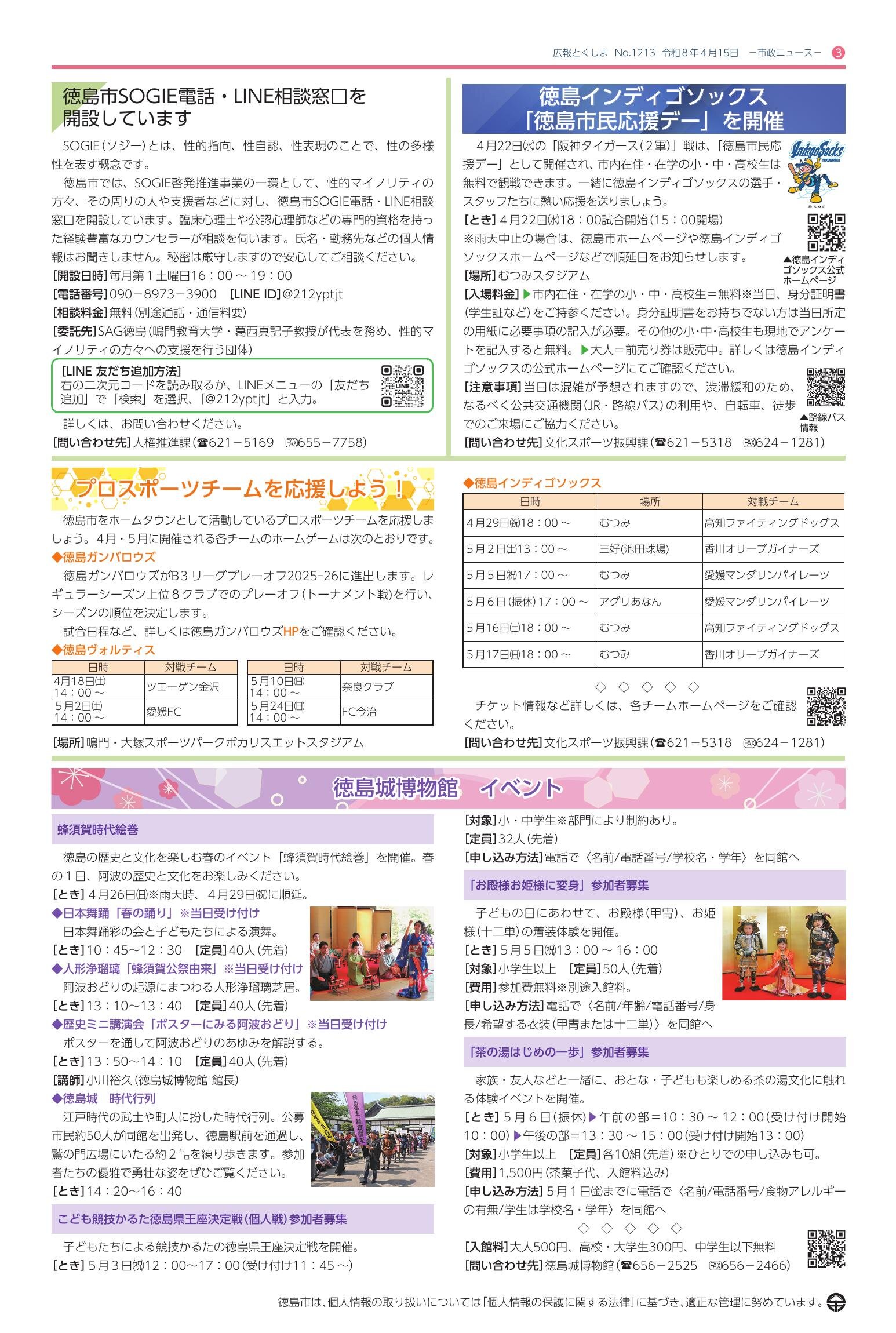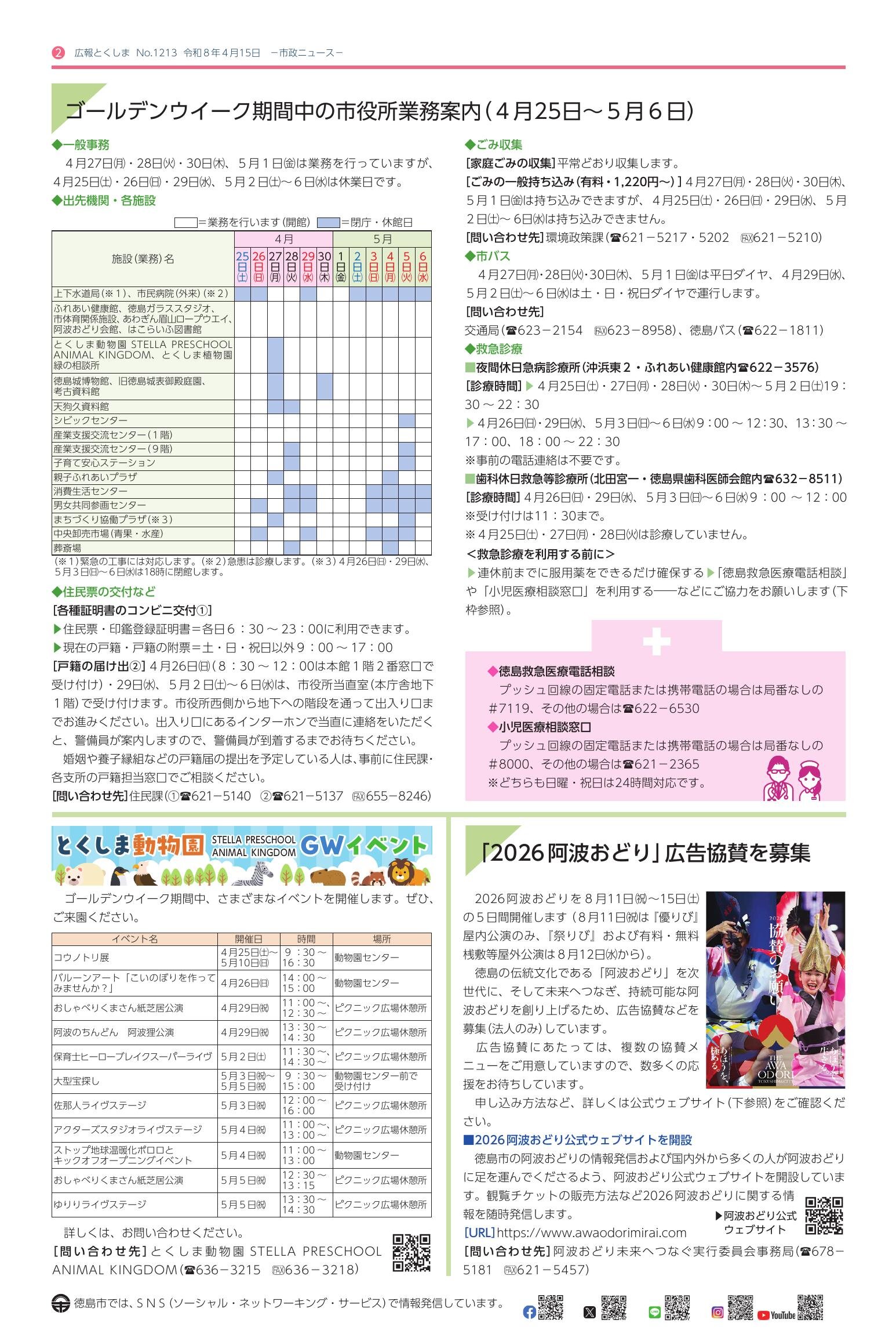 「広報とくしま 2026年4月15日号」は徳島市が発行している広報誌です - ウェブサイト: https://www.city.tokushima.tokushima.jp/index.html