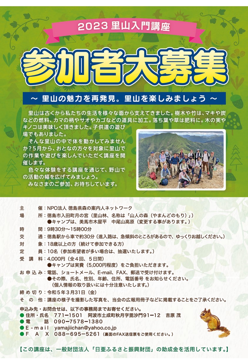 2023 里山入門講座 参加者大募集(徳島市)