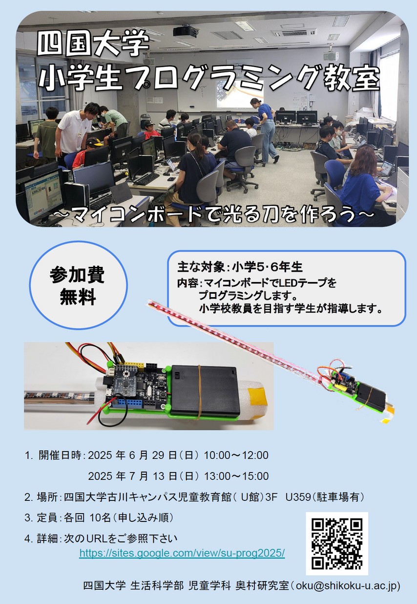四国大学 小学生プログラミング教室~マイコンボードで光る刀を作ろう~(徳島市)