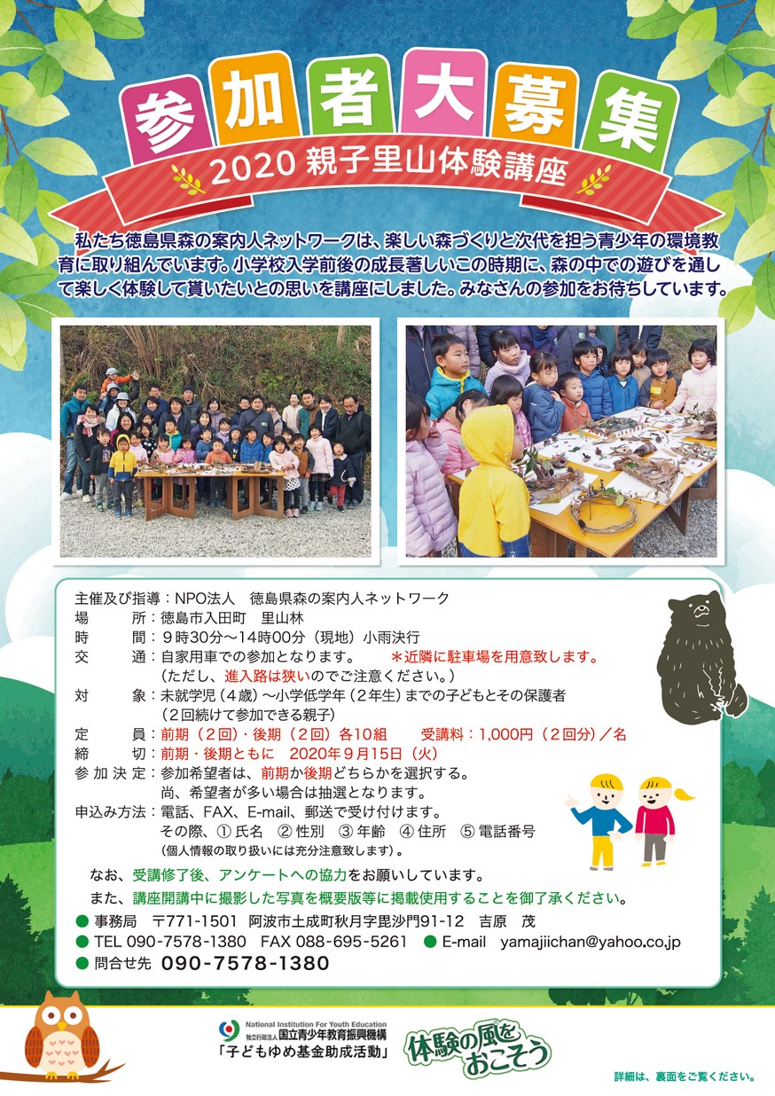 2020 少年少女里山マイスター養成講座 参加者大募集(徳島市)